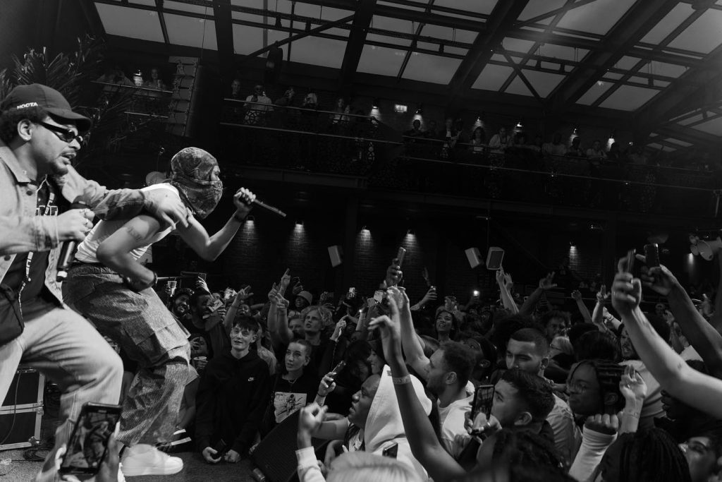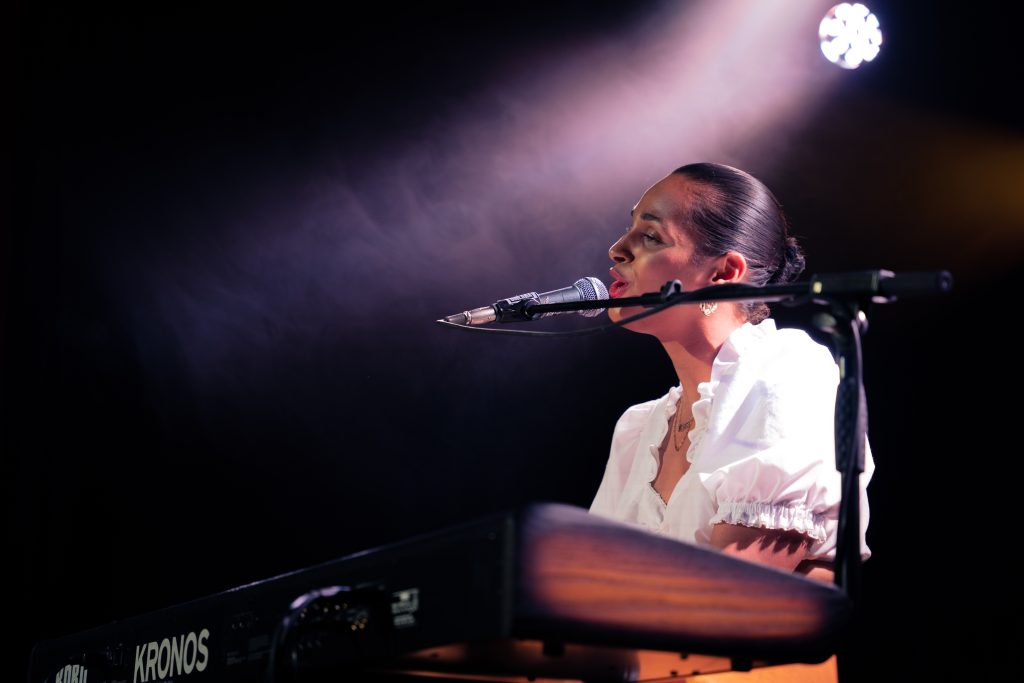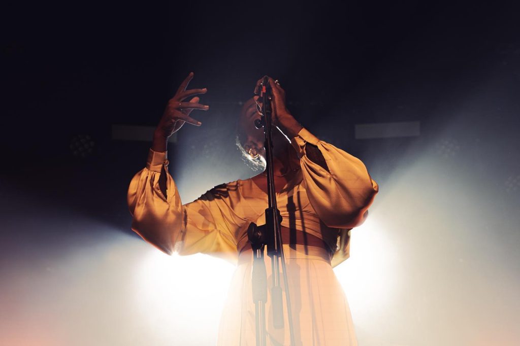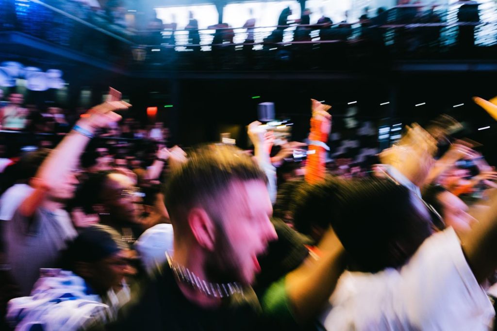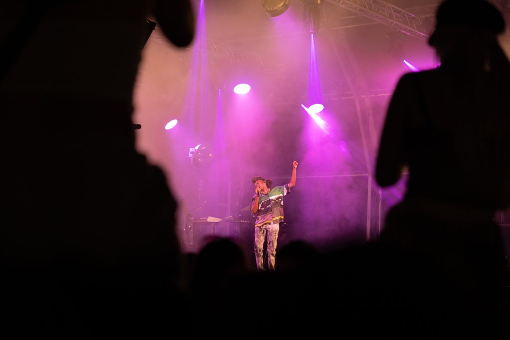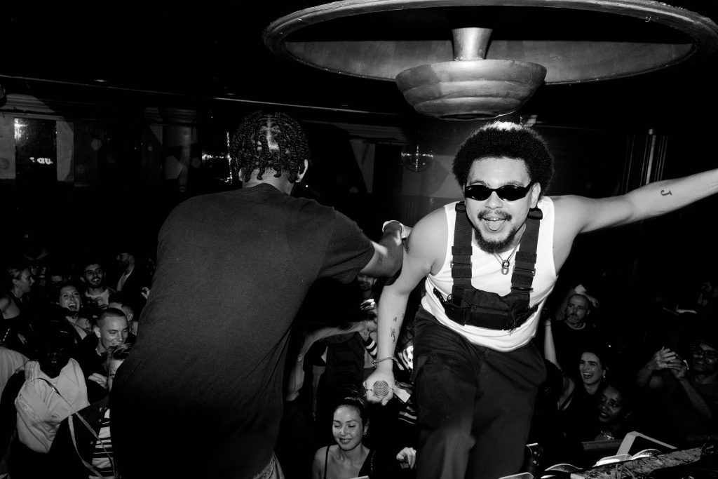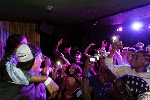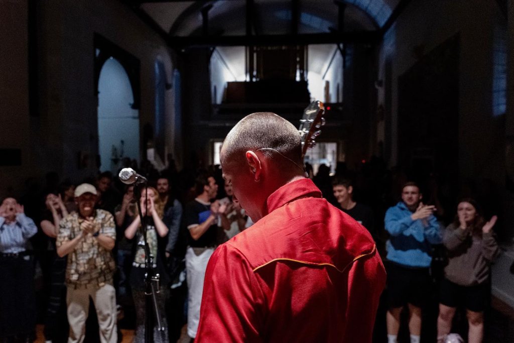 Moving through the crowd, slipping backstage, and rushing onstage when the moment calls for it. The pace of events is unpredictable, the light changes regularly and something is always happening.